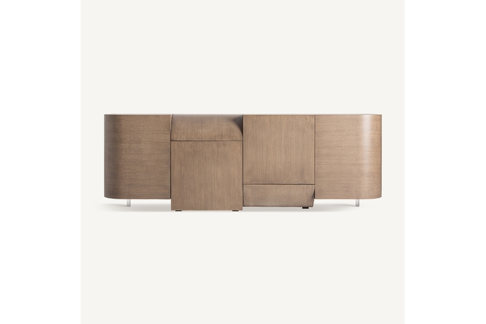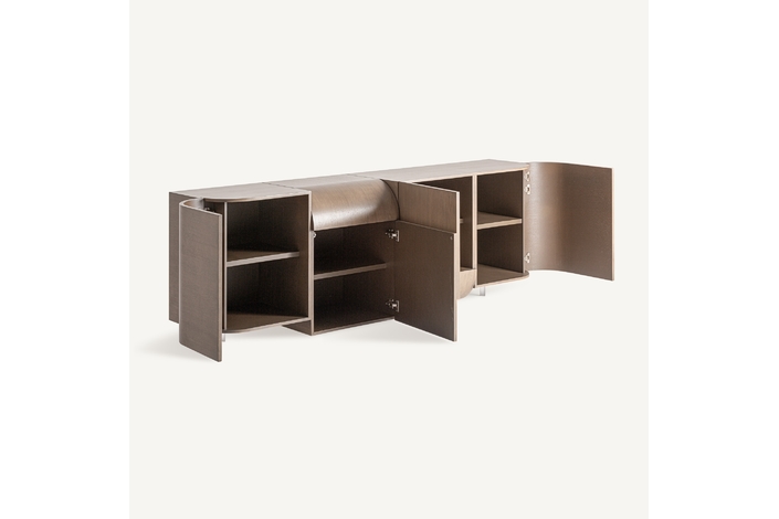 Aparador Aksaray de estilo art deco, fabricado en madera roble en color marrón.
