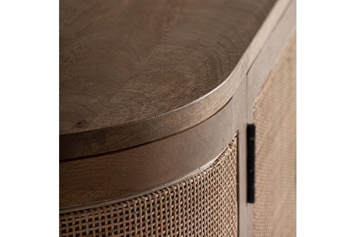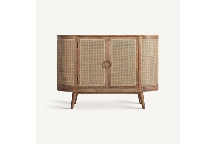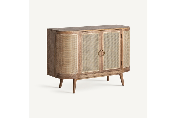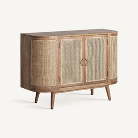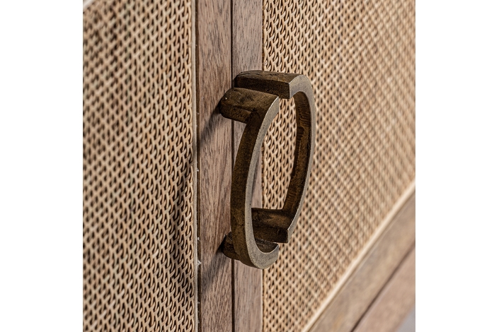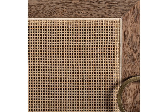 Aparador beckley, en color marrón, de estilo nórdico. Fabricado en madera de mango y mimbre.
