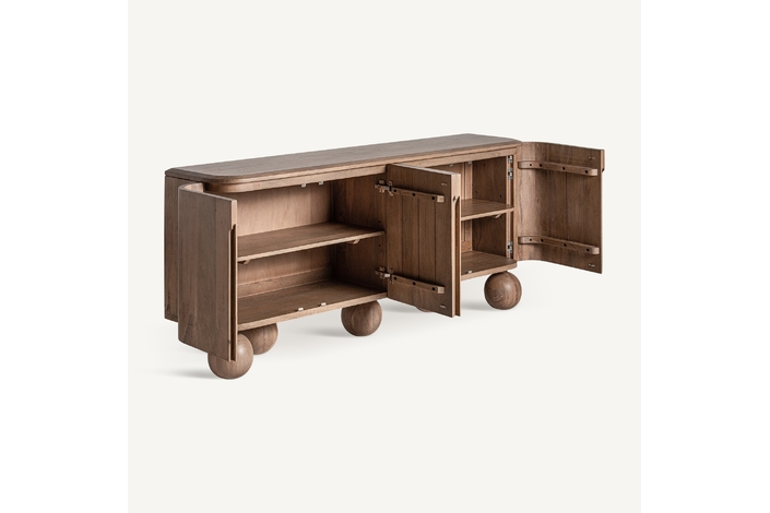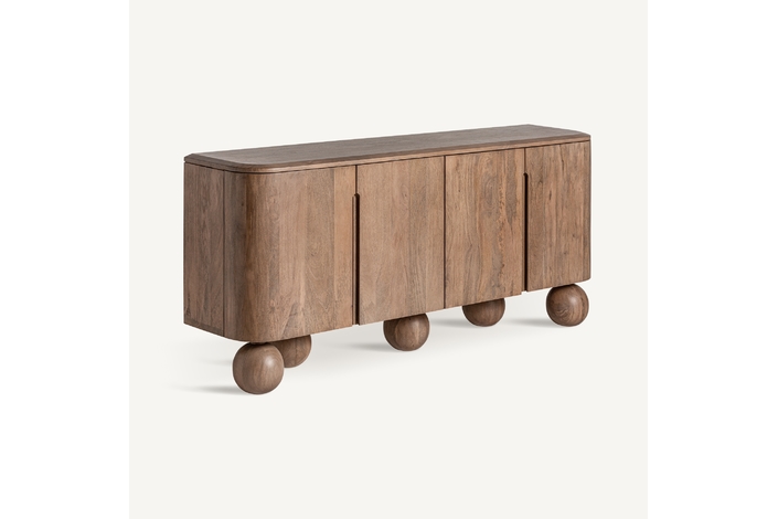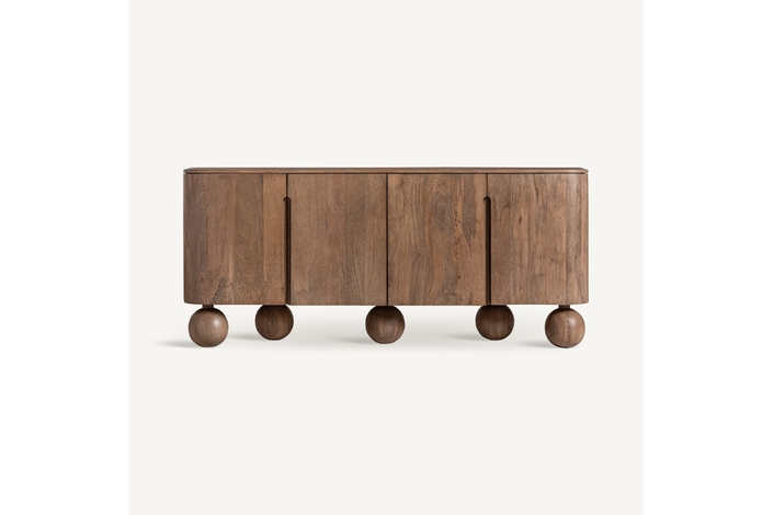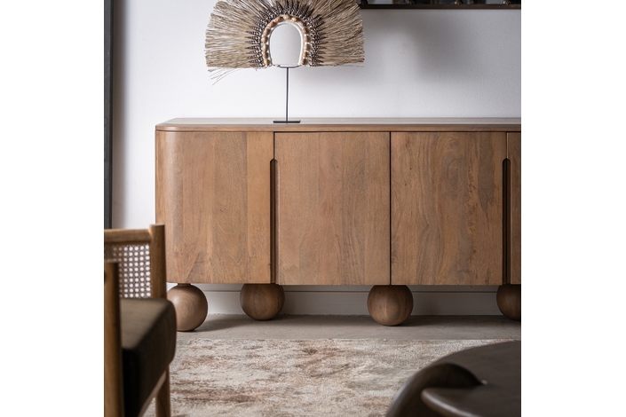 El Buffet Laugna de VICAL home redefine la elegancia con sus patas en forma de esfera. Fabricado con madera de mango de alta calidad en un acabado natural, ofrece un diseño único y sofisticado. El detalle distintivo de las patas esféricas aporta un toque artístico que lo distingue. Con el buffet con patas esferas Laugna, añadirás no solo funcionalidad, sino también una pieza de conversación a tu hogar que combina tradición y modernidad.