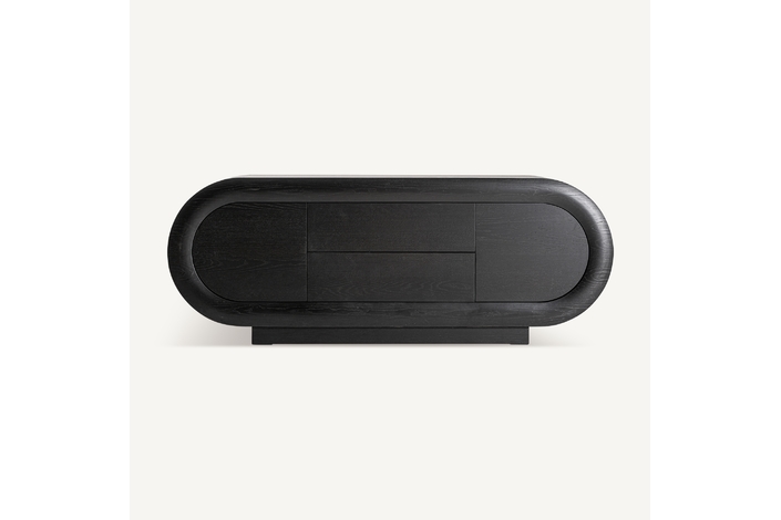 El aparador Chamonix destaca por su diseño art déco reinterpretado en clave actual. Su estructura en roble marrón y negro dibuja formas redondeadas y un frente depurado que aporta elegancia gráfica al espacio. Una pieza funcional y distinguida, perfecta para proyectos con sensibilidad contemporánea.