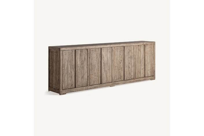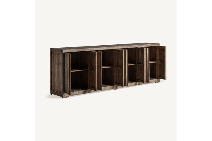 Aparador cotswolds, de estilo rústico. Fabricado en madera de olmo reciclado, en color marrón claro desgastado.