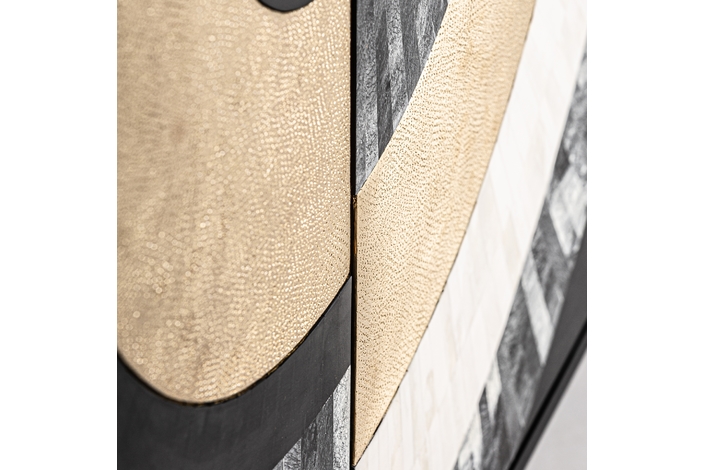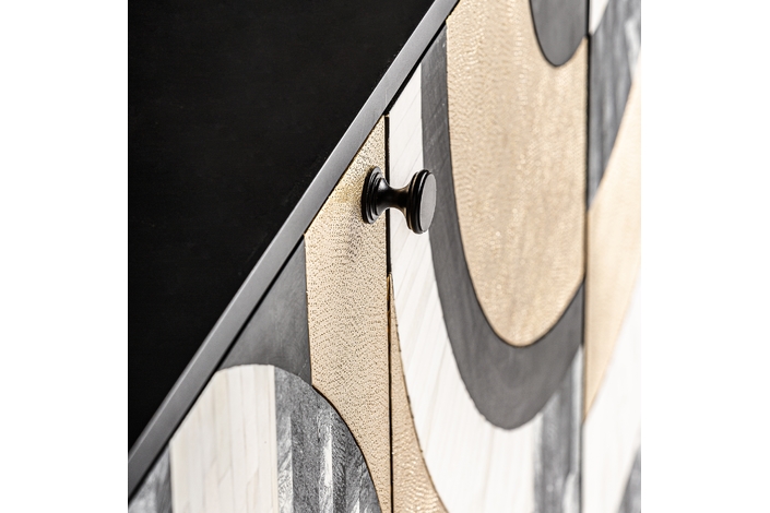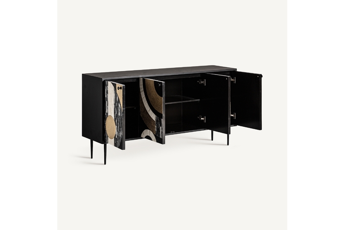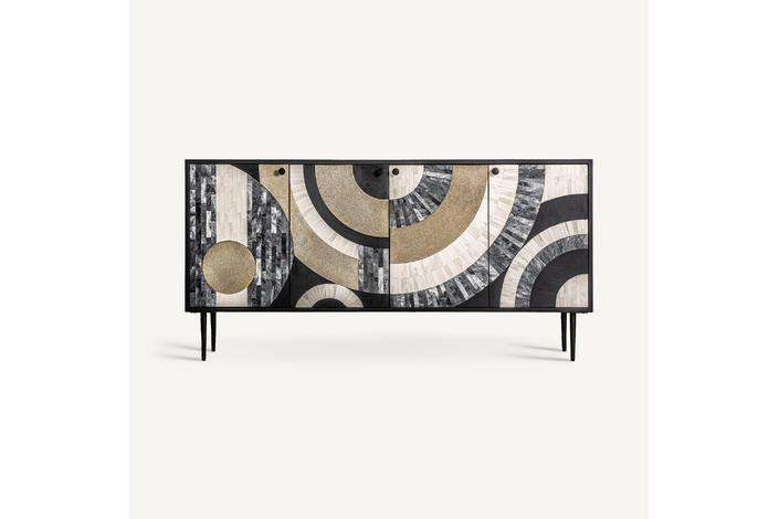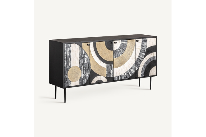 Con el Buffet Daru de VICAL home, el arte y la función convergen. Inspirado en el diseño Art Deco y hecho de hierro, este buffet resalta con su paleta tricolor: negro, blanco y oro. Los detalles en resina y latón aportan una chispa adicional de sofisticación. El buffet art deco Daru no solo es un mueble funcional, sino también una obra de arte que captura miradas y complementa cualquier ambiente con su diseño único. Una pieza magistral para hogares con gusto.