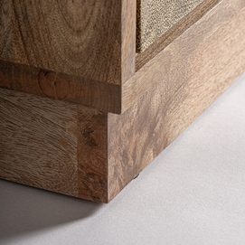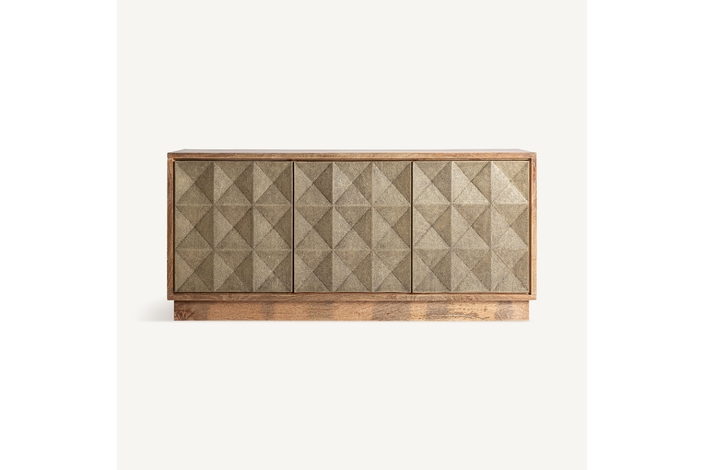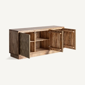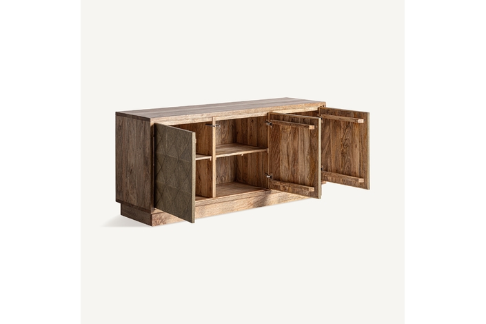 Aparador ezra, en color marrón/oro, de estilo art deco. Fabricado en madera de mango, combinado con latón.