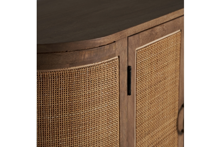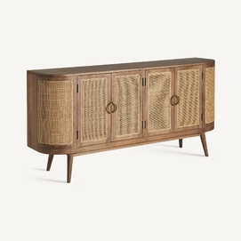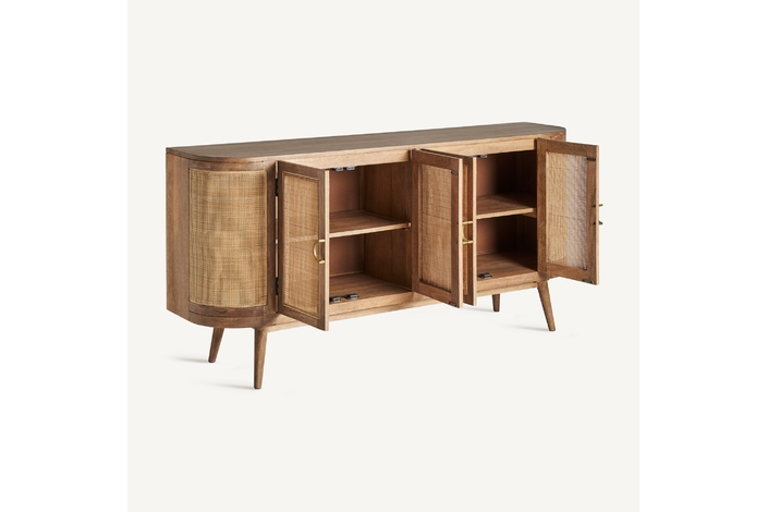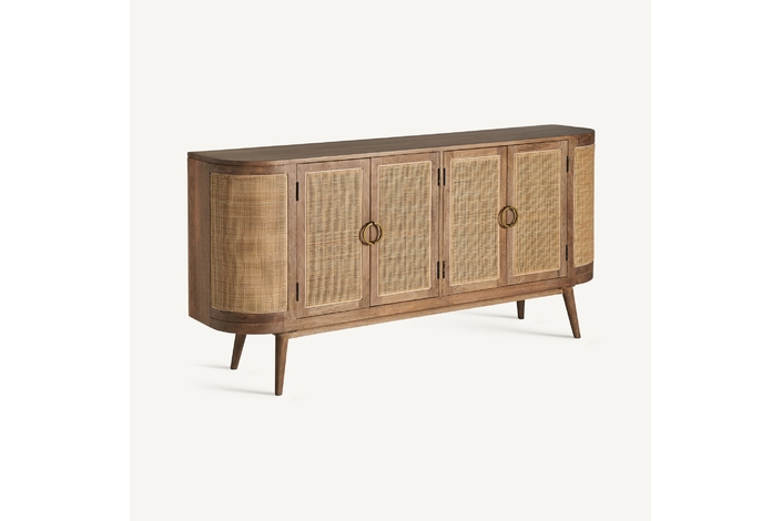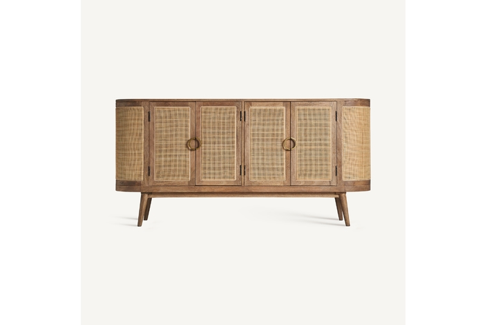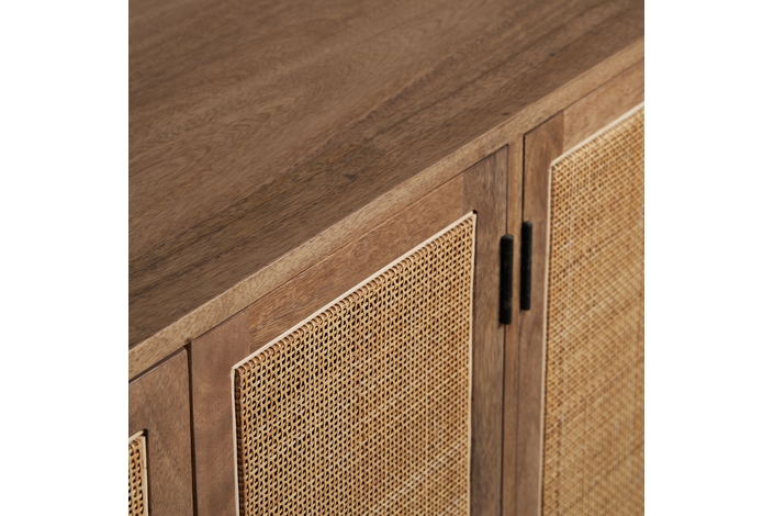 El Buffet Holeby de VICAL home combina la robustez de la madera de mango con la elegancia del ratán en sus puertas. Su acabado natural realza la belleza intrínseca de la madera, mientras que las puertas de ratán aportan un toque rústico y aireado. Este buffet puertas ratan es la elección perfecta para aquellos que buscan funcionalidad, almacenamiento y un diseño auténtico que aporte calidez a cualquier espacio. Holeby es un homenaje al arte artesanal y a la naturaleza.
