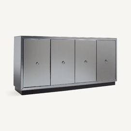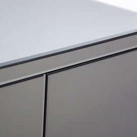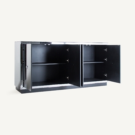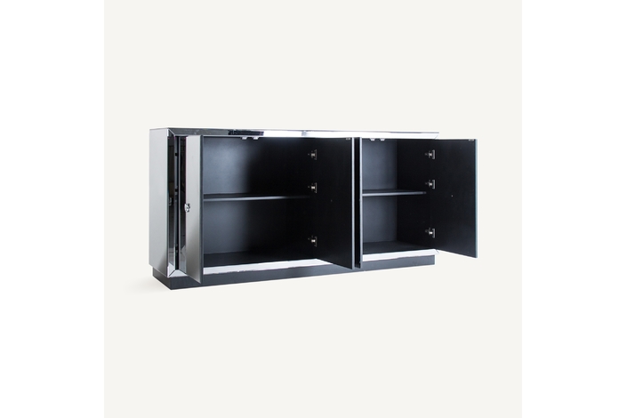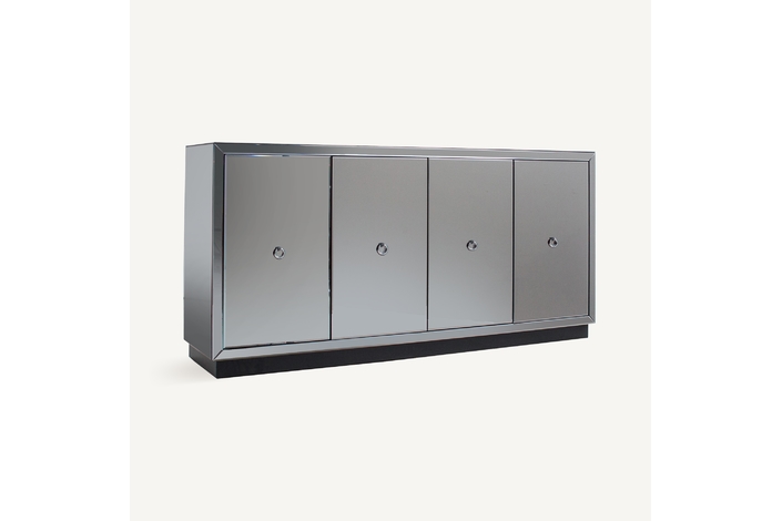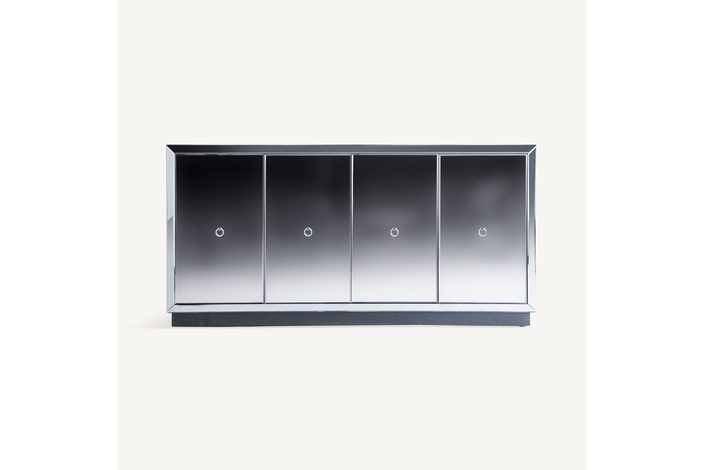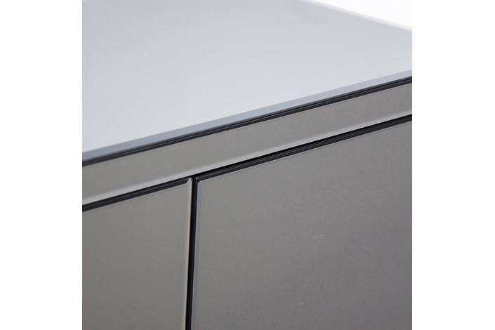 Aparador kirishi, en color gris, de estilo art deco. Fabricado en espejo, combinado con madera dm.