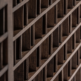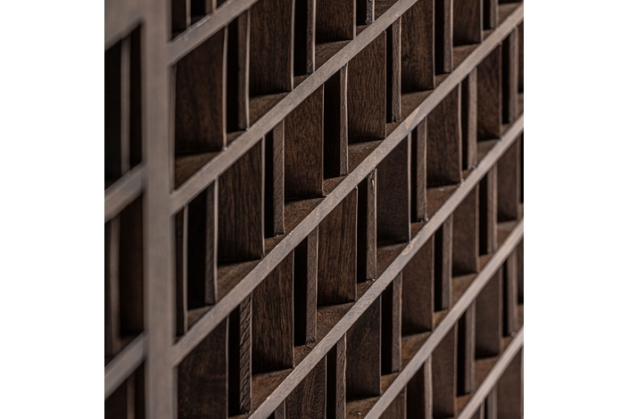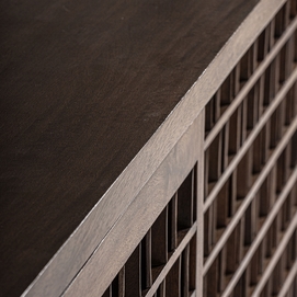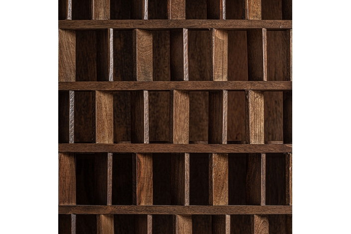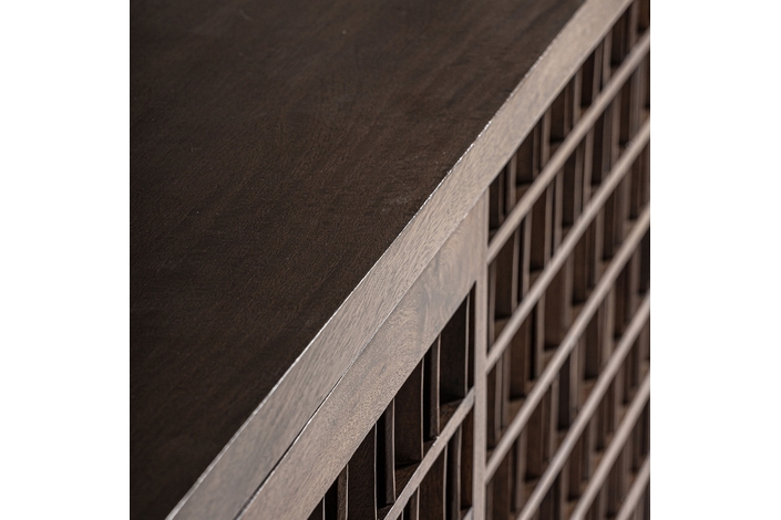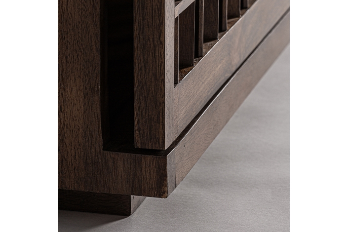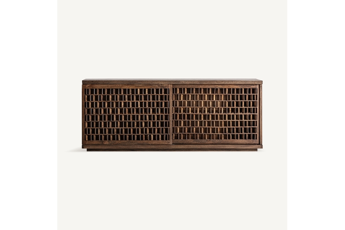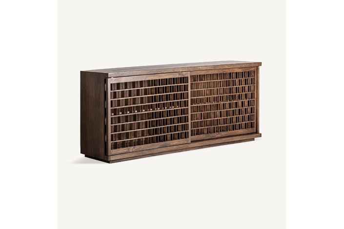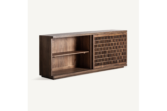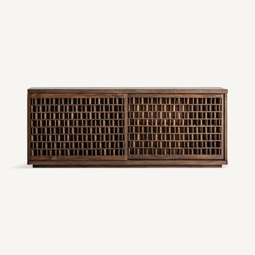 Aparador kladno, en color marrón, de estilo art deco. Fabricado en madera de mango, combinado con sin.