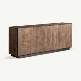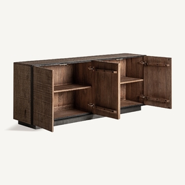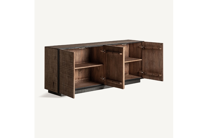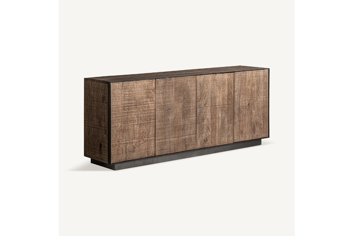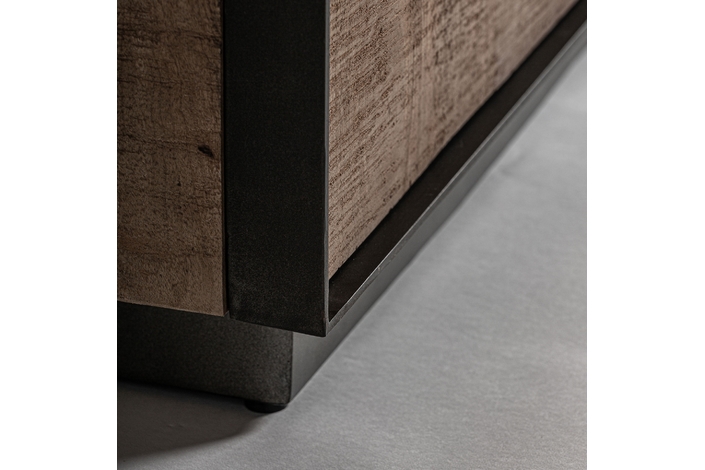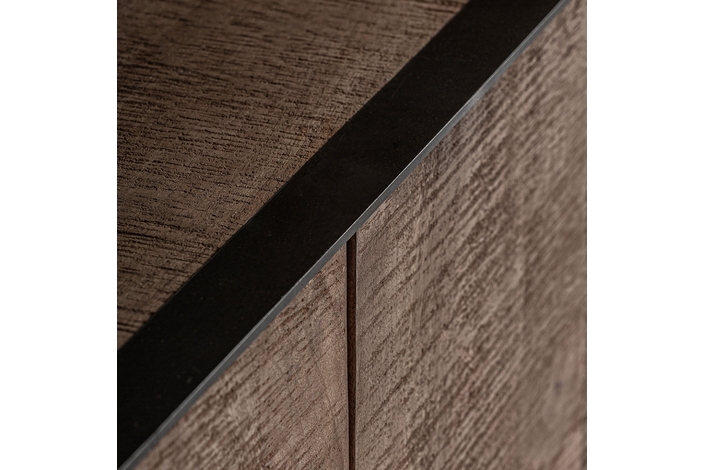 Aparador krefeld, de estilo art deco. Fabricado en madera de mango, en color negro, combinado con hierro, en color marrón.