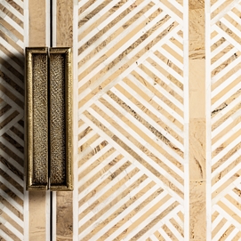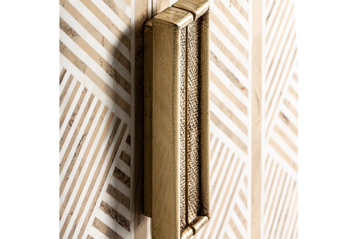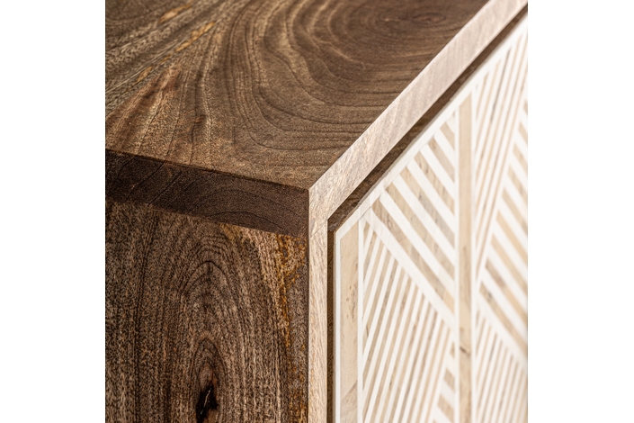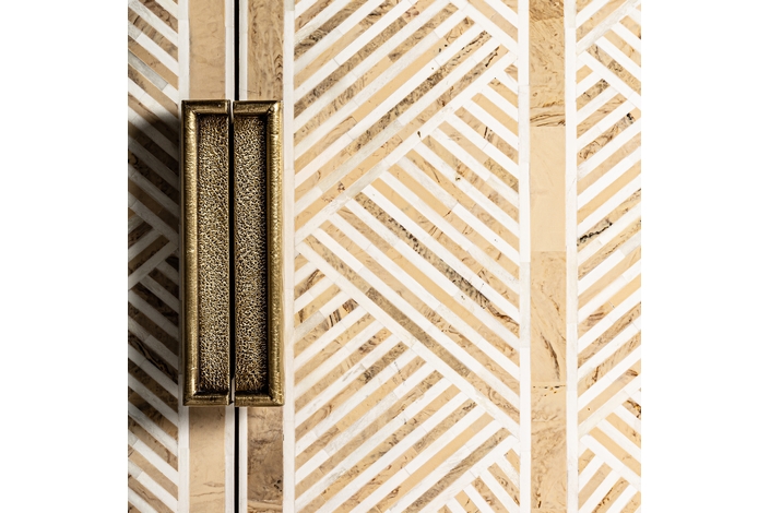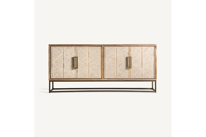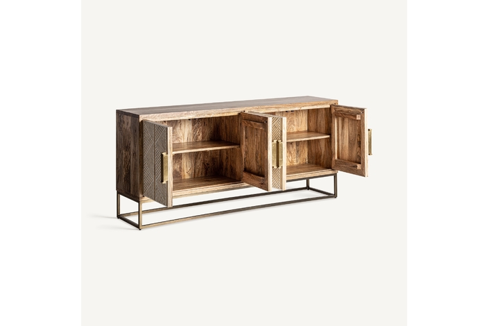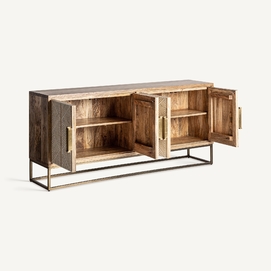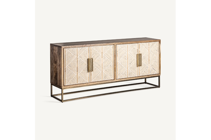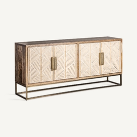 Aparador laugna, en color marrón claro, de estilo art deco. Fabricado en madera de mango, combinado con hueso y hierro.
