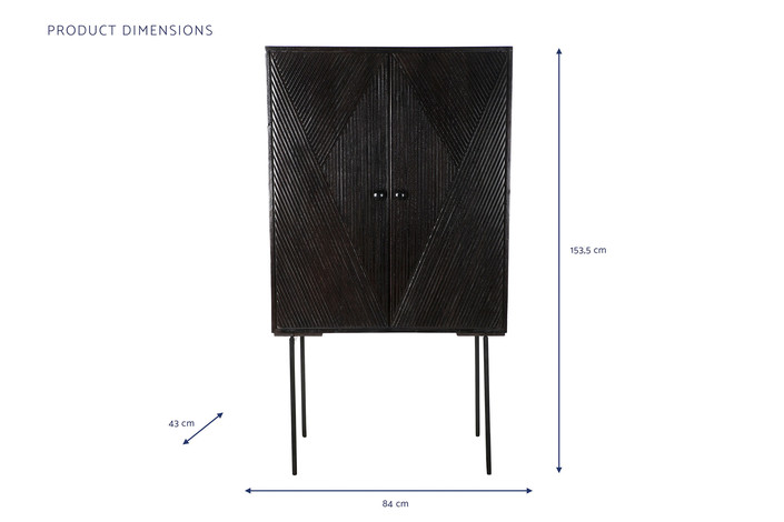 Dimensiones (cm) Longitud 84  |  Fondo 43  |  Altura 153,5 Peso neto producto (kg) 36,00 Material Mango  |  Metal