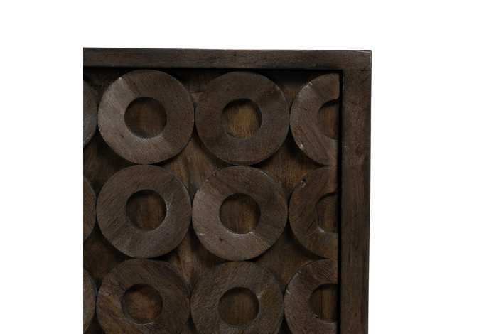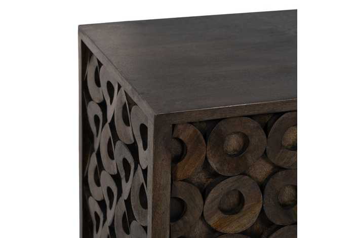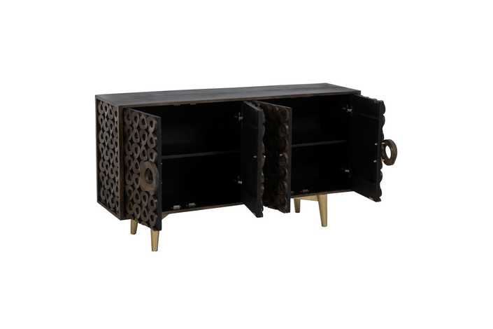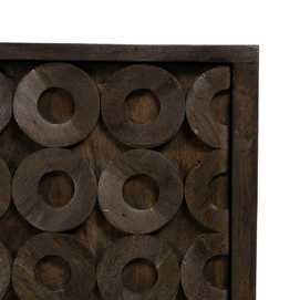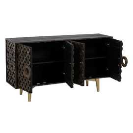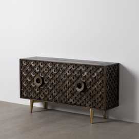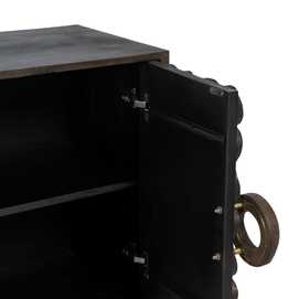 Material: madera de mango, hierro. Altura patas: 20cm. Puertas: 36x58,5cm.