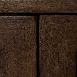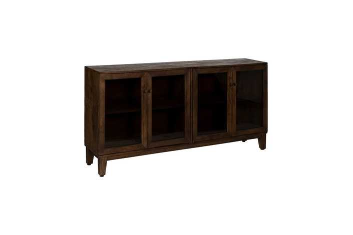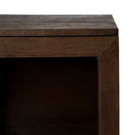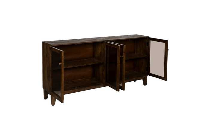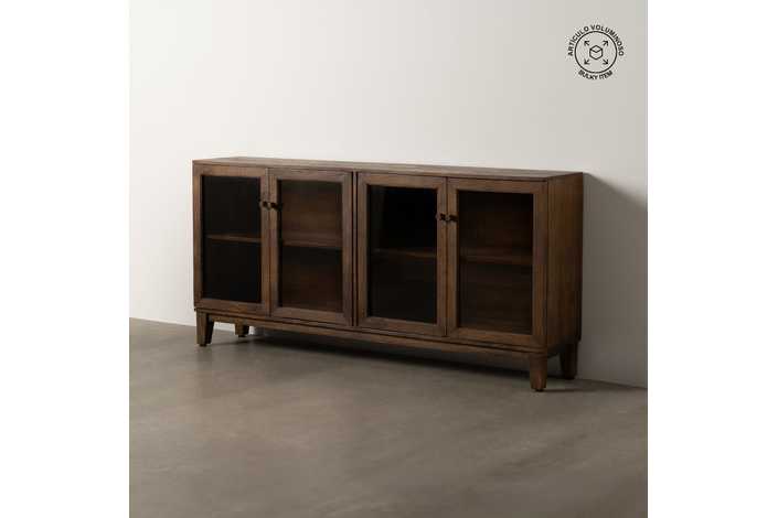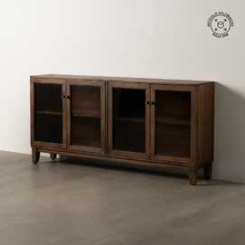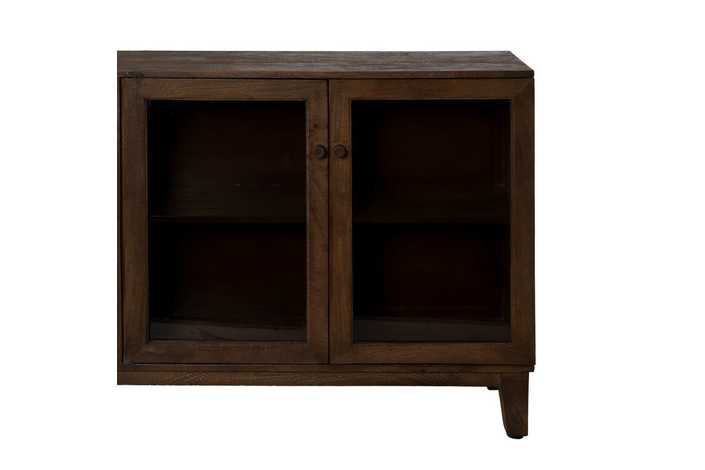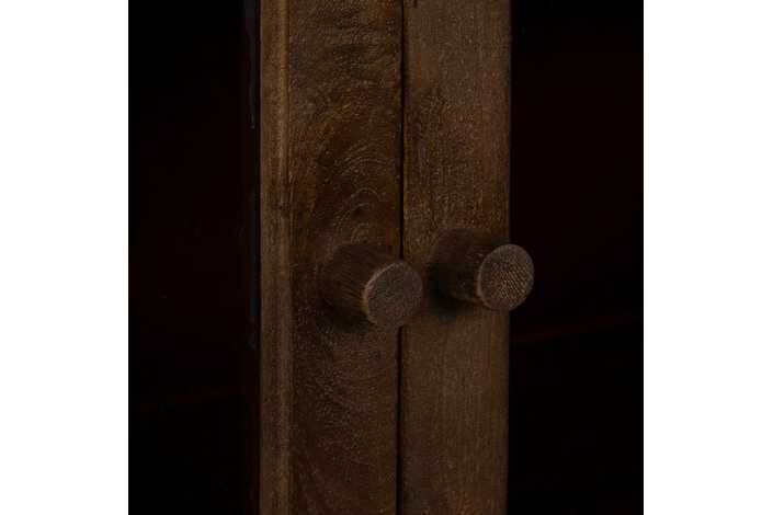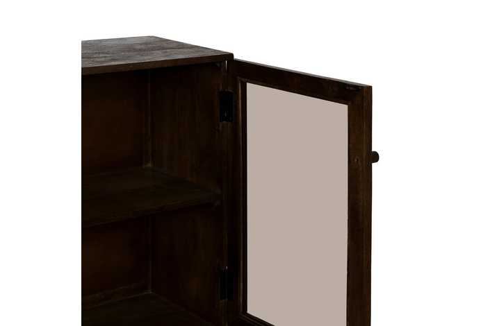 Material: madera de mango, cristal. Puertas: 44x67cm. Altura patas: 12cm.