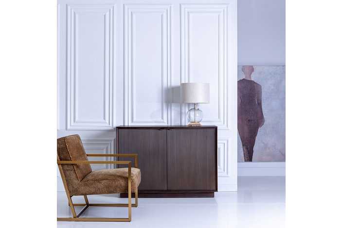 Material: Madera de mindi, dm. Medida puertas: 57x72cm. Incluye leja interior, altura: 35cm. Altura zócalo: 7cm.