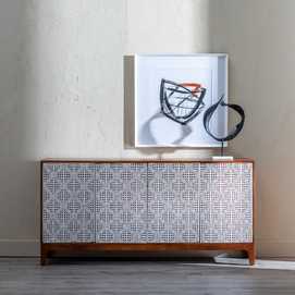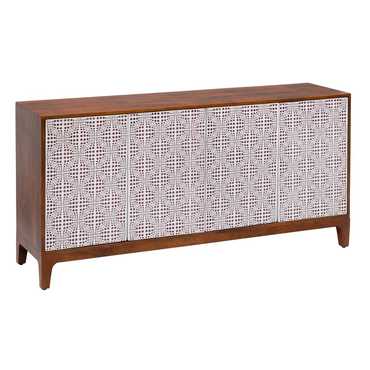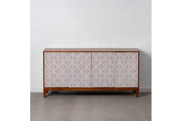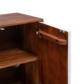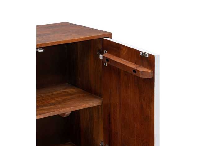 Material: madera de mango. Puertas: 60x40cm. Altura lejas: 29cm. Altura patas: 10cm.