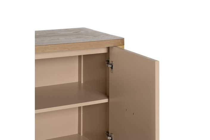 Material: estructura madera de abeto - vinilo madera de fresno. Altura patas: 16cm. Leja interior, altura hueco 30cm. No precisa montaje.