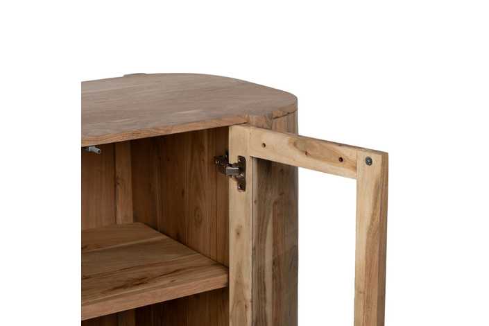 Material: madera de acacia, cristal. Puertas: 34,5x60,5cm. Altura patas: 17cm.