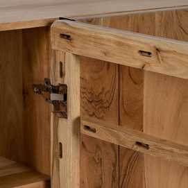 Material: madera de acacia, hierro. Puertas: 49x70cm. Altura patas: 10cm.