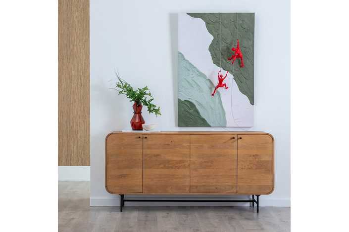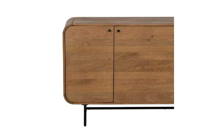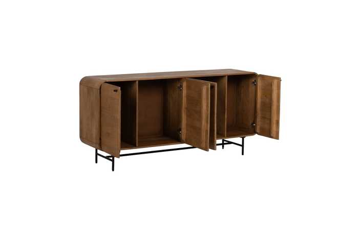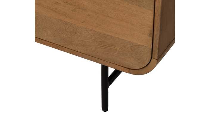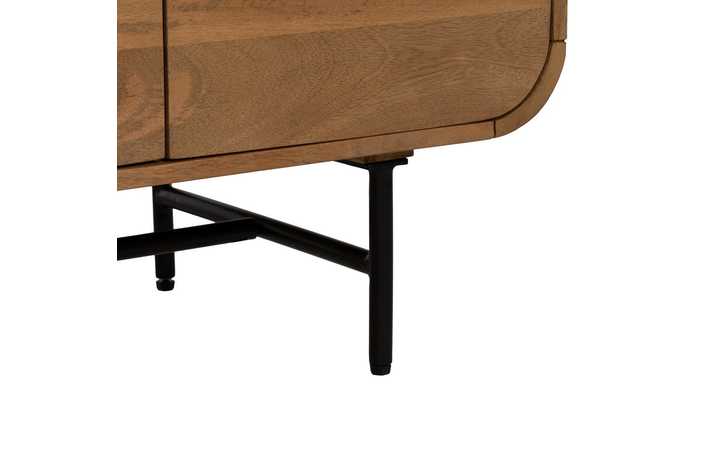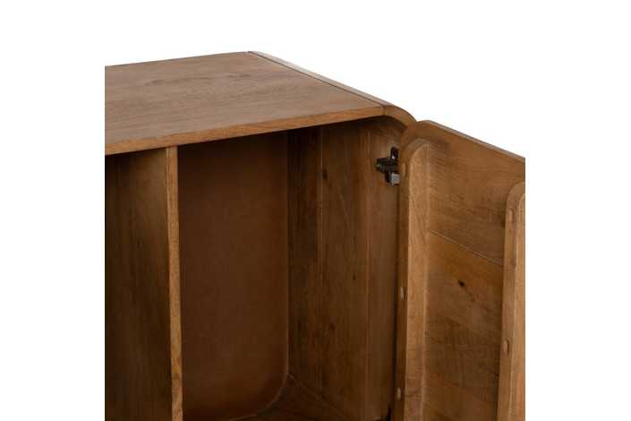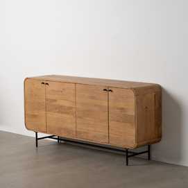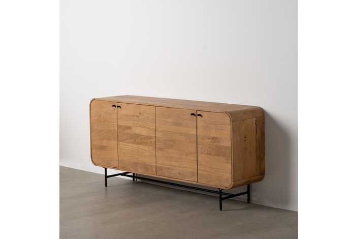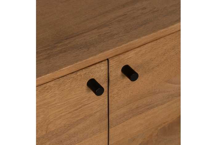 Material: madera de mango, hierro. Puertas: 35,5x59cm (laterales)/ 47x59cm (centrales). Altura patas: 19cm. 1 leja interior a mitad de altura.