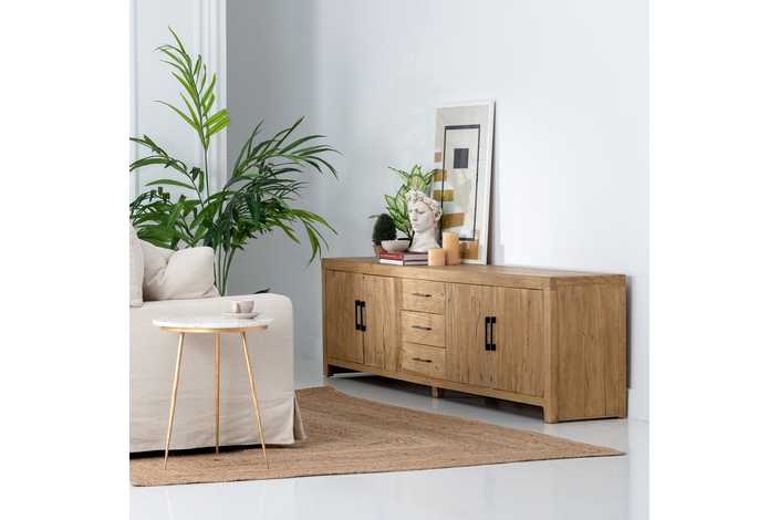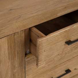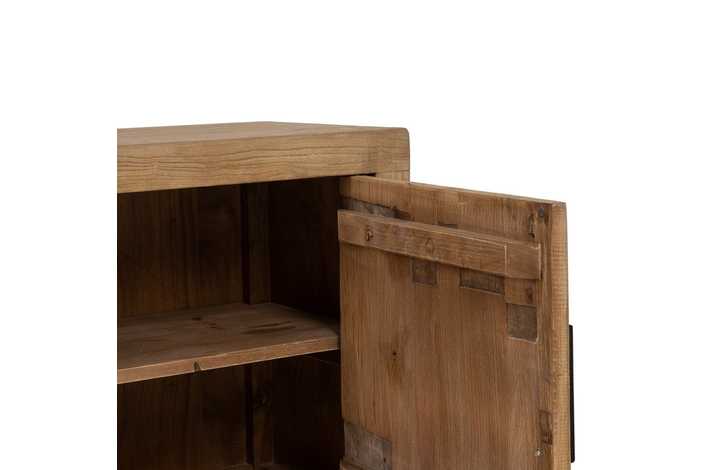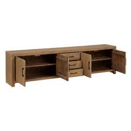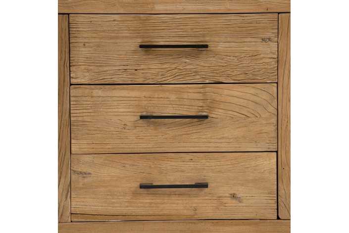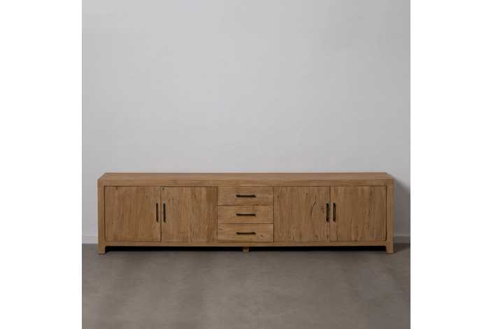 Material: Madera de olmo. Puertas: 48x49cm. Cajones: 48,5x16,5cm. Altura patas: 6,5cm.