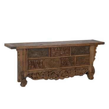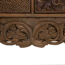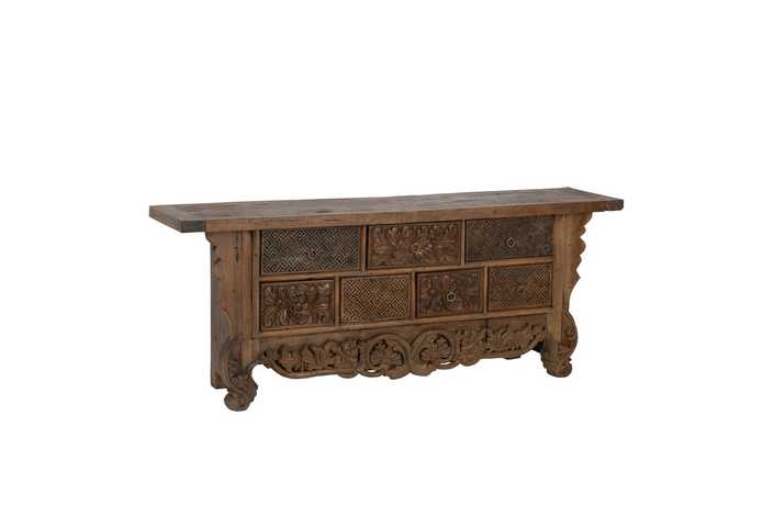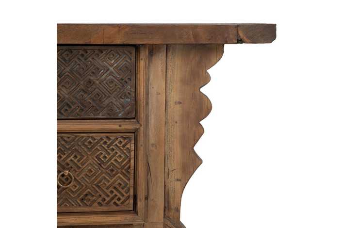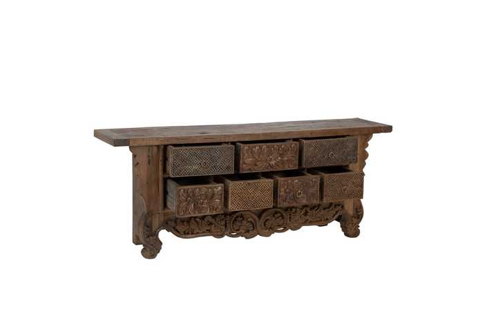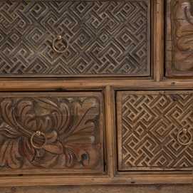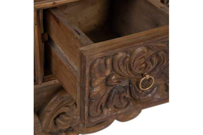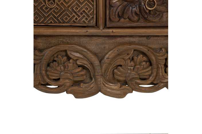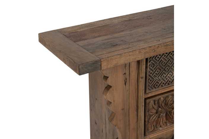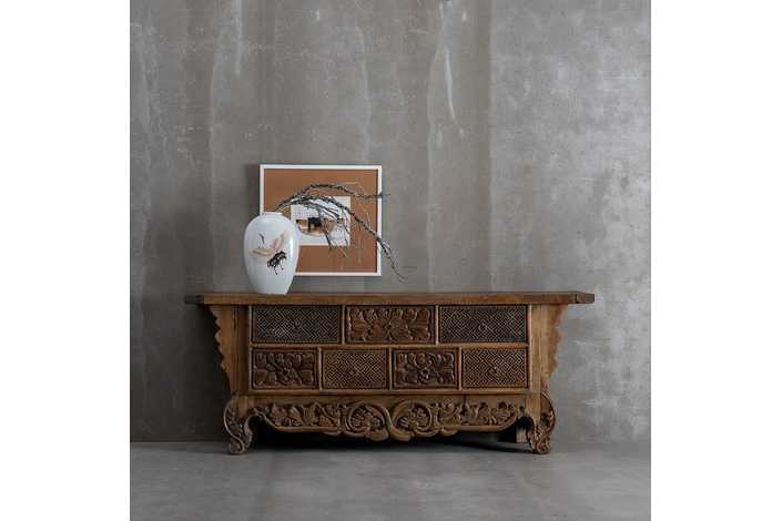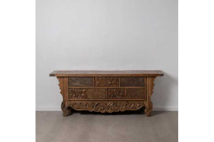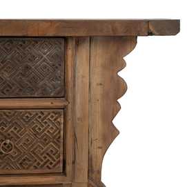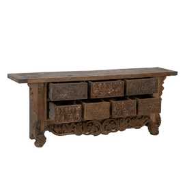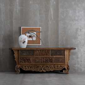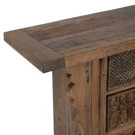 Material: madera reciclada. Cajones superiores: 46x19,5cm. Cajones inferiores: 34x20cm. Altura patas: 7cm.