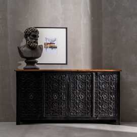 APARADOR NATURAL-NEGRO MADERA DE MANGO 173 X 41 X 97 CM
