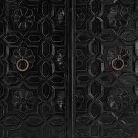 Material: madera de mango. Altura patas: 8,5cm. Medida puertas: 39x68cm. Balda interior, altura 34cm.