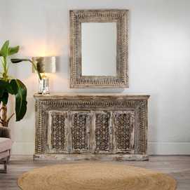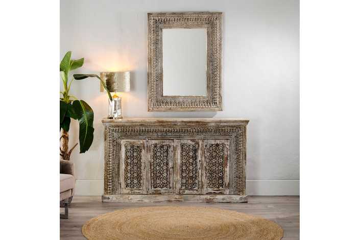 APARADOR TALLADO MADERA MACIZA DE MANGO. Piezas exclusivas hechas a mano, la pieza recibida puede tener ligeras variaciones respecto a la de la fotografía.