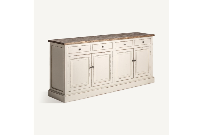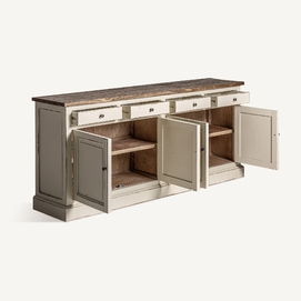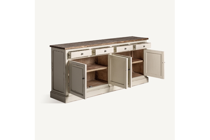 El Buffet Pivka de VICAL home refleja la esencia de lo clásico y auténtico. Fabricado en madera de olmo, su acabado en blanco roto armoniza con cualquier estilo de decoración. Ideal para salones y comedores que buscan funcionalidad y elegancia. Su diseño, que recuerda a las antiguas alacenas, aporta un toque nostálgico y encantador a tu hogar. Con espacio amplio, el buffet alacena es perfecto para mantener todo organizado sin renunciar al estilo.