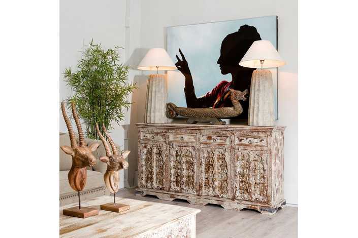 APARADOR TALLADO MADERA MACIZA DE MANGO. Piezas exclusivas hechas a mano, la pieza recibida puede tener ligeras variaciones respecto a la de la fotografía.
