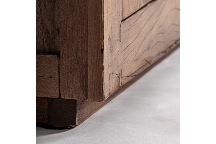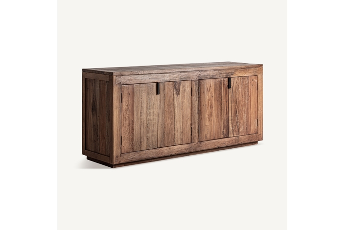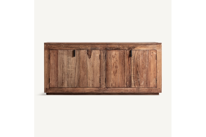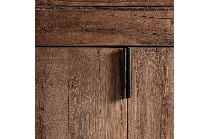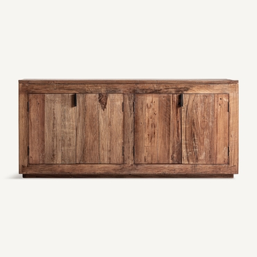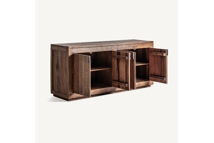 Aparador Selby de estilo rústico, fabricado en madera recuperada en color marrón, combinado con hierro en color negro.
