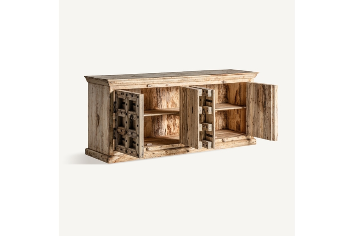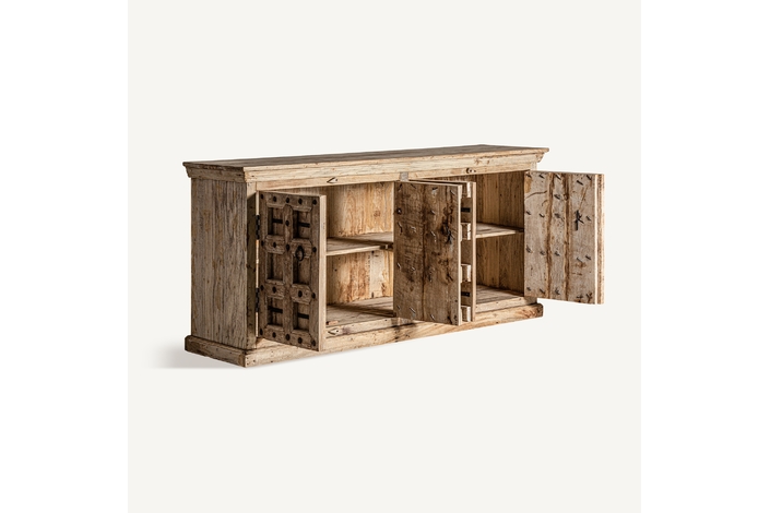 Sumérgete en la rica tradición de la India con el Buffet Sirigere de VICAL home. Esta majestuosa pieza de madera de mango, con acabado natural envejecido, es el resultado de la auténtica artesanía india. Cada imperfección, nudo y marca le añade valor, convirtiendo a Sirigere en una pieza única y atemporal. Amplio y con un encanto que trasciende culturas, este buffet tradicional india es una verdadera obra de arte para tu hogar.