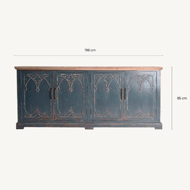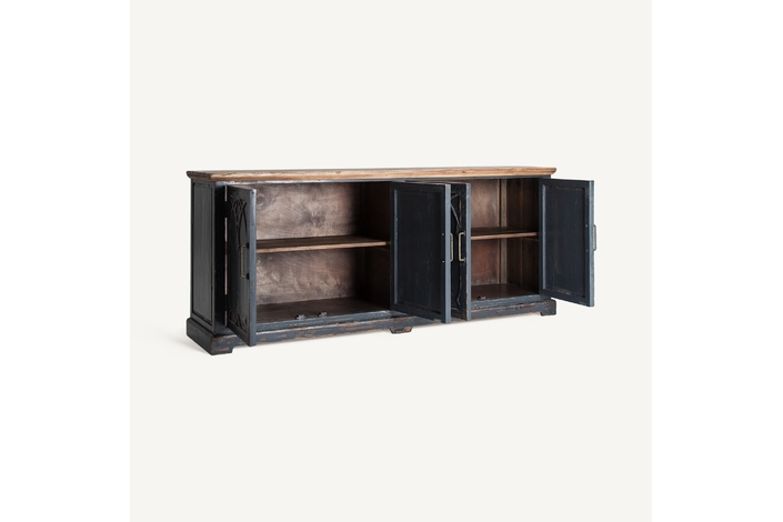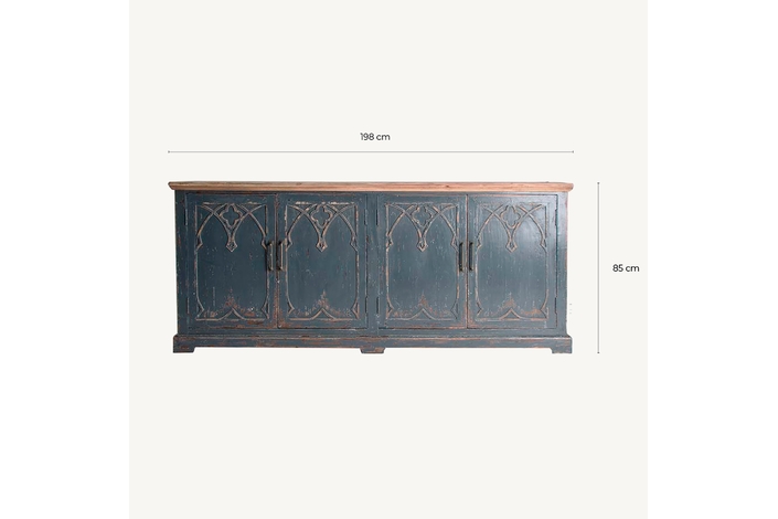 El Buffet Suzara de VICAL home evoca tradición y elegancia. Fabricado con madera de olmo, este buffet combina durabilidad con un diseño intemporal. Su acabado en azulado aporta un toque fresco y auténtico, ideal para espacios que buscan combinar lo moderno con lo tradicional. Con amplio espacio de almacenamiento, el buffet tradicional de olmo es perfecto para mantener ordenados tus utensilios y objetos de valor, al mismo tiempo que adorna tu hogar con su presencia majestuosa.