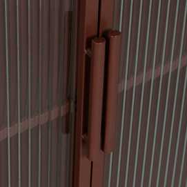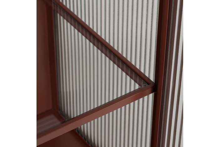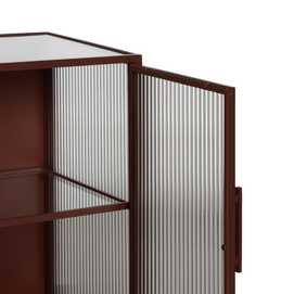 Material: hierro - cristal Altura patas: 24.5cm. Medida puertas. 28.5x56.5cm. Altura hueco lejas: 27.5cm. Patas para montar.