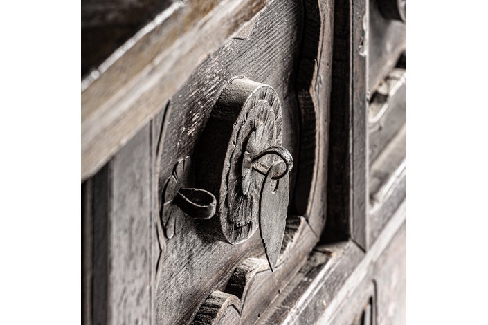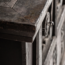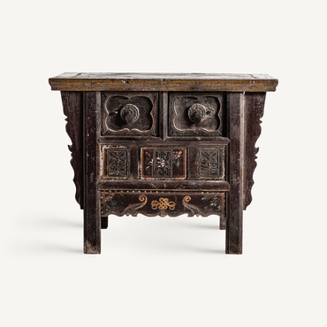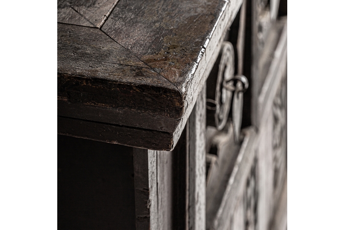 Aparador tiandeng, en color marrón envejecido, de estilo oriental. Fabricado en madera de olmo.
