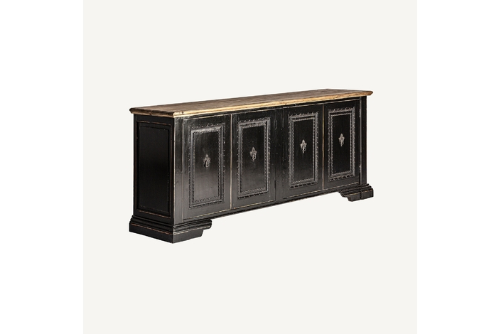 El Buffet Ypres de VICAL home evoca recuerdos de tiempos pasados con su diseño tradicional en madera de olmo. Con un acabado en negro/natural, este buffet tradicional de madera de olmo es una pieza maestra de la artesanía tradicional. Perfecto para aquellos que aprecian la belleza de los diseños clásicos y la durabilidad de la madera genuina. Su tamaño generoso garantiza suficiente espacio para almacenar tus pertenencias.