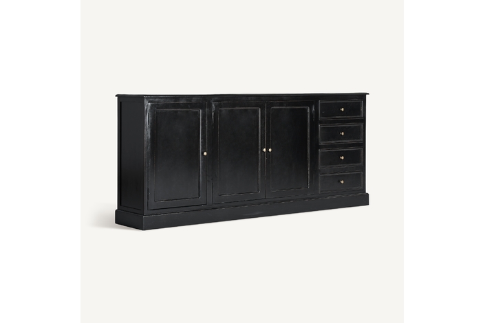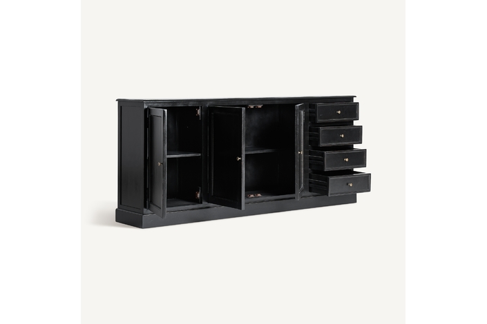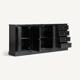 Introduce una mezcla de modernidad y elegancia con el Buffet Zenica de VICAL home. Confeccionado en madera de mango y terminado en un sofisticado negro, este buffet aparador modular es perfecto para aquellos que buscan versatilidad en diseño y funcionalidad. Las secciones de vidrio añaden un toque contemporáneo, permitiendo una visibilidad y acceso óptimos. Con su amplio tamaño y acabado refinado, Zenica es más que un mueble, es una declaración de estilo.