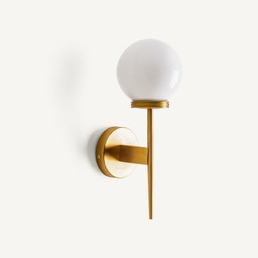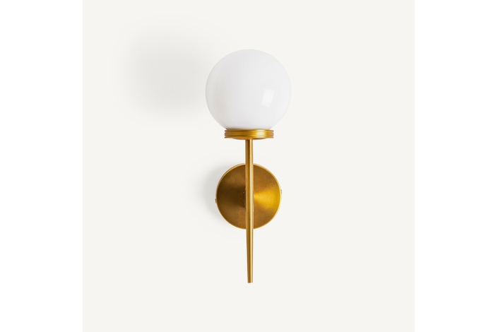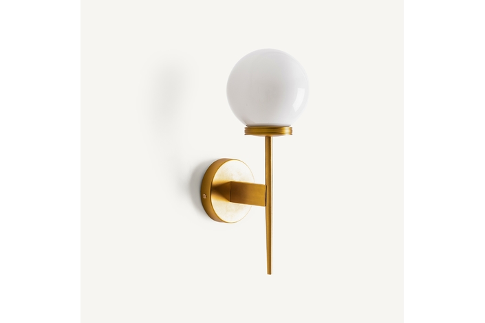 Aplique bola, de estilo art deco. Fabricado en latón, en color blanco, combinado con cristal, en color oro. Producto desmontable. Compatible con: 27760.