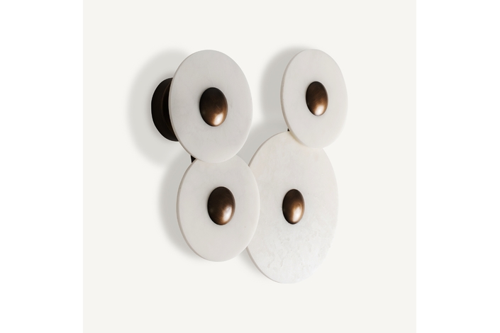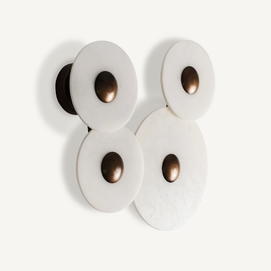 El aplique Elies de VICAL es una pieza escultórica fabricada en resina y fibra combinada en blanco. Inspiración art déco que se convierte en acento decorativo además de funcional.