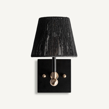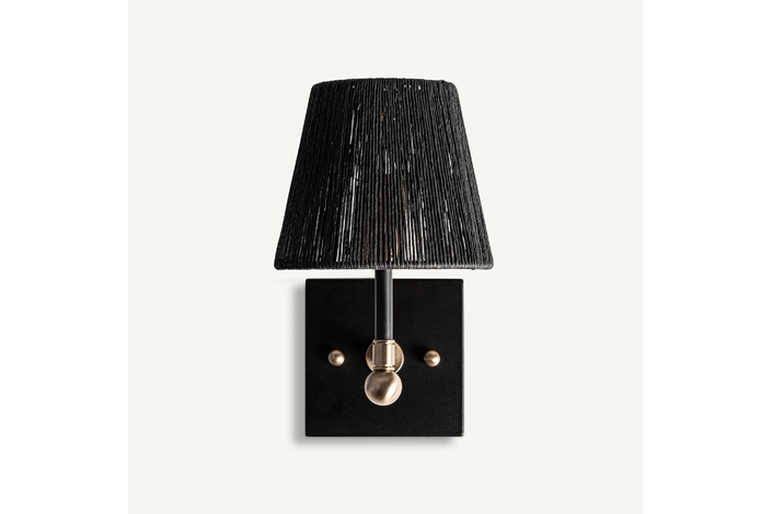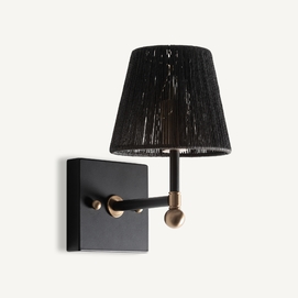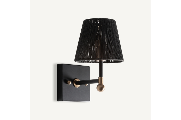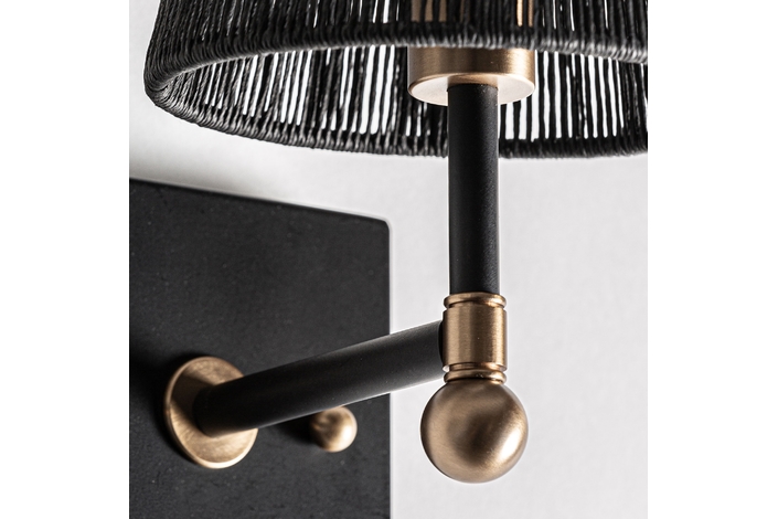 Aplique gael, de estilo art deco. Fabricado en hierro, en color negro, combinado con cuerda, en color oro. Producto desmontable.