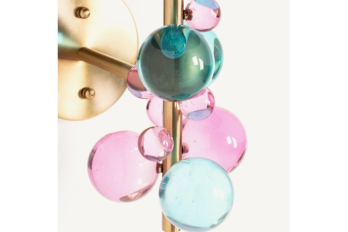Para impregnar cualquier mesa de estilo ha llegado la lámpara de pared INCH. De estilo art deco multicolor que combina el vidrio con el hierro. Esta lámpara guarda la esencia de lo clásico junto al infraestructura circular que hace un guiño a la sofisticación.