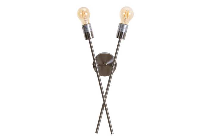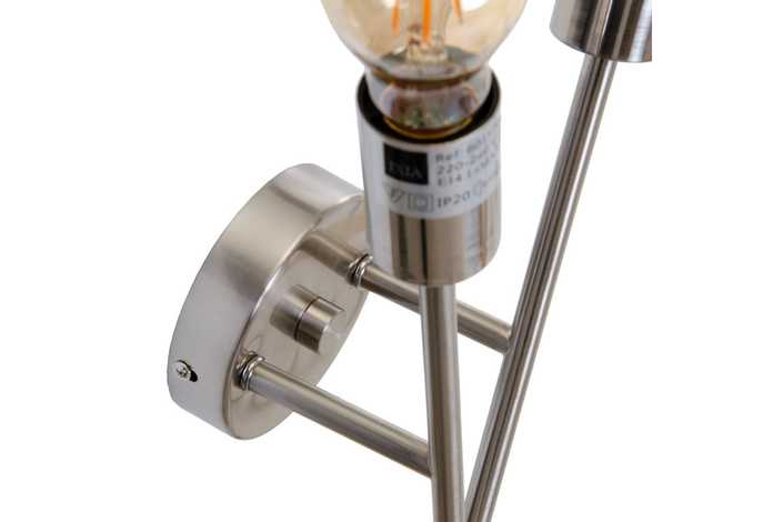 MATERIAL: HIERRO. VOLTAJE: 220V. CASQUILLO: E14. BOMBILLAS: 2 X 40W MÁX (NO INCLUIDAS). HIERRO COLOR PLATA.