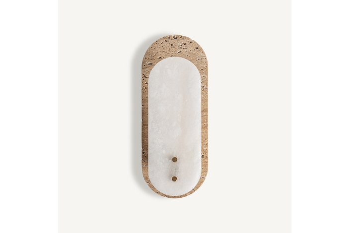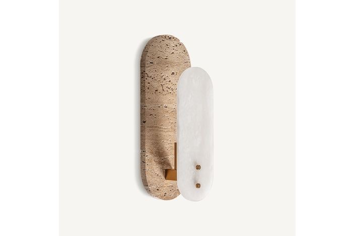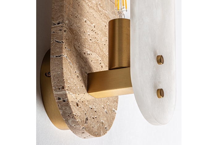Aplique tetbury, en color blanco/beige, de estilo art deco. Fabricado en bronce, combinado con mármol. Producto desmontable.