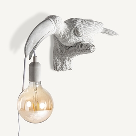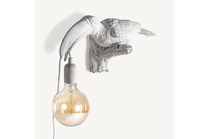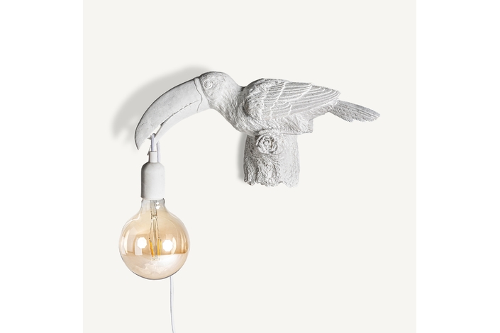 Aplique tucan, en color blanco, de estilo kitsh. Fabricado en resina.