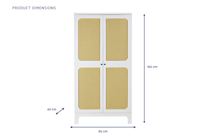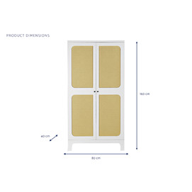 Dimensiones (cm) Longitud 80  |  Fondo 40  |  Altura 160 Peso neto producto (kg) 35,95 Material Abeto  |  Ratan