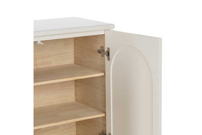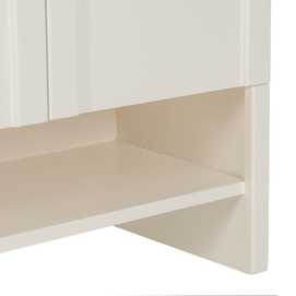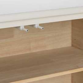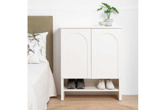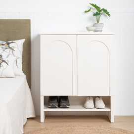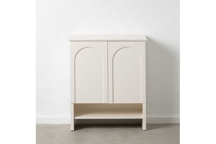 Material: madera de abeto - Dm. Medida puertas: 38x64cm. Altura pata: 12cm. Dos lejas interiores Medida huecos: 74x18cm. No precisa montaje.