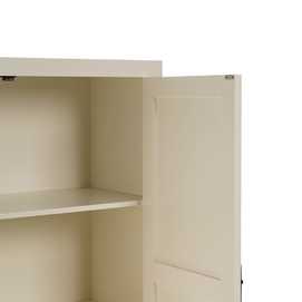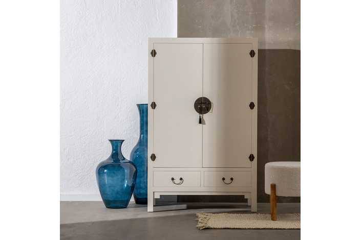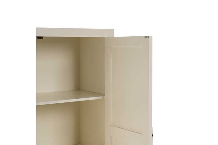 Material: Dm - patas madera de abeto Dos lejas interiores desmontables Medida huecos: 99x42 - 99x37 - 99x37cm. Altura patas: 13cm. Medida cajones: 43.5x15cm. Medida puertas: 45x114cm. No precisa montaje.