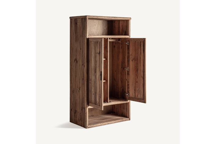 Armario breive, de estilo rústico. Fabricado en madera de pino reciclado, en color marrón envejecido.