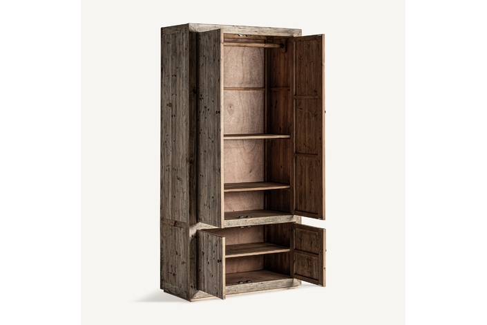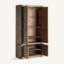 Armario cotswolds, de estilo rústico. Fabricado en madera de olmo reciclado, en color marrón claro desgastado.