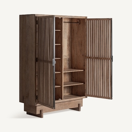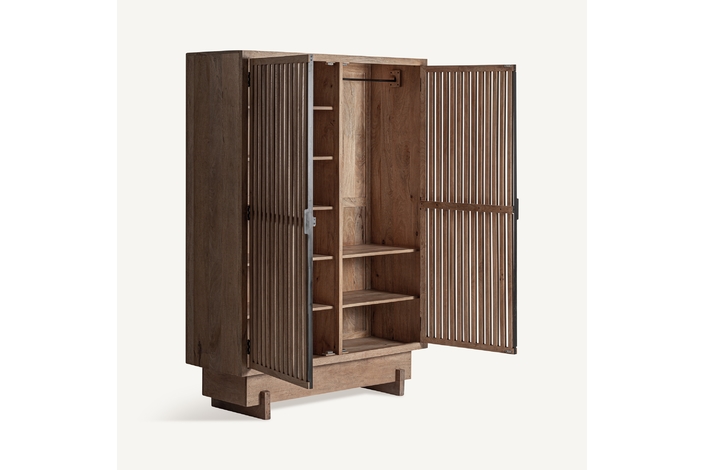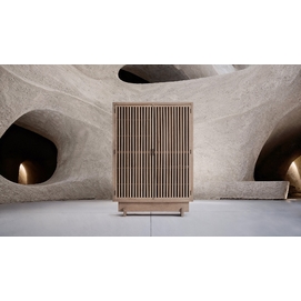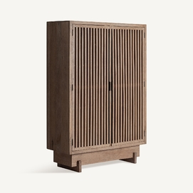 El Armario GABIA de VICALDESIGN evoca la esencia de los porticones japoneses: vertical, sobrio y sereno. Su estructura sólida contrasta con la ligereza visual del enrejado, que filtra la luz y proyecta sombras cambiantes. Más que un simple espacio de almacenaje, es un altar doméstico de calma y orden, capaz de transformar la atmósfera que lo rodea.
