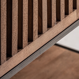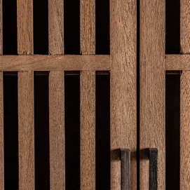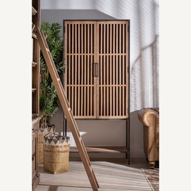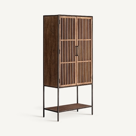El Armario Gaffney de VICAL home combina madera de mango y hierro en un diseño distintivo de color negro/natural. Con dimensiones de 90x45x195cm, este armario con base alta es un imprescindible para quienes buscan un mueble elegante y funcional para su espacio.
