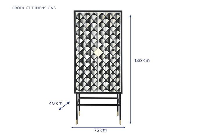 Dimensiones (cm) Longitud 75  |  Fondo 40  |  Altura 180 Peso neto producto (kg) 61,97 Material Hueso  |  Resina  |  Mdf